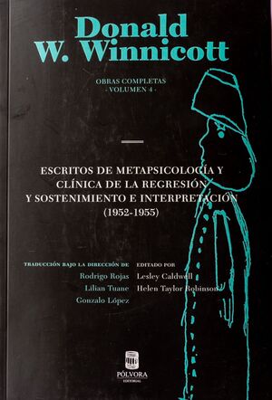 Este cuarto volumen, titulado Escritos de metapsicología y clínica de la regresión y sostenimiento e interpretación (1952-1955) continúa la publicación en castellano de las Obras completas de Donald W. Winnicott. Las Obras completas han sido compiladas, editadas y comentadas por un equipo de académicos winnicottianos. Presentadas cronológicamente en 12 volúmenes, las Obras completas del psicoanalista inglés constituyen un conjunto de observaciones clínicas, consultas de niños y niñas, textos psicoanalíticos, correspondencia, así como trabajos inéditos de temáticas que siguen siendo de interés para lectores contemporáneos (como la salud mental en la infancia, la maternidad, o sus conceptos de madre suficientemente buena y objeto transicional). Este cuarto volumen cuenta con la introducción realizada por Dominique Scarfone, junto a una introducción elaborada por Lilian Tuane quien forma parte del comité de traducción al español. El lector también contará con un exhaustivo trabajo de notación y comentarios por parte de las editoras, que dotan de contexto a cada uno de los trabajos de Winnicott, en conjunto con el trabajo de notación realizado por el comité de traducción, que marca la elección de determinados conceptos por sobre otros en nuestra lengua.